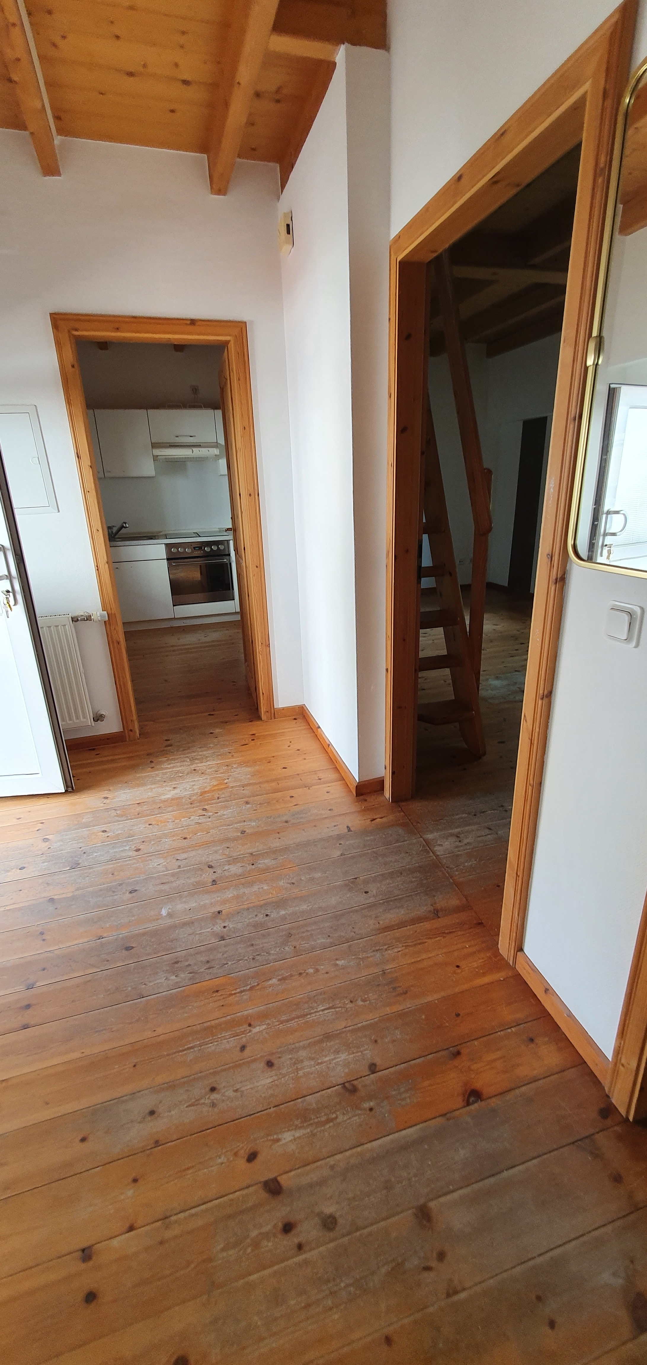 Holzdecken und Holzdielenböden verleihen dieser Maisonetten-Wohnung eine besondere, entspannte, heimelige und behagliche Wohn-Atmosphäre.
